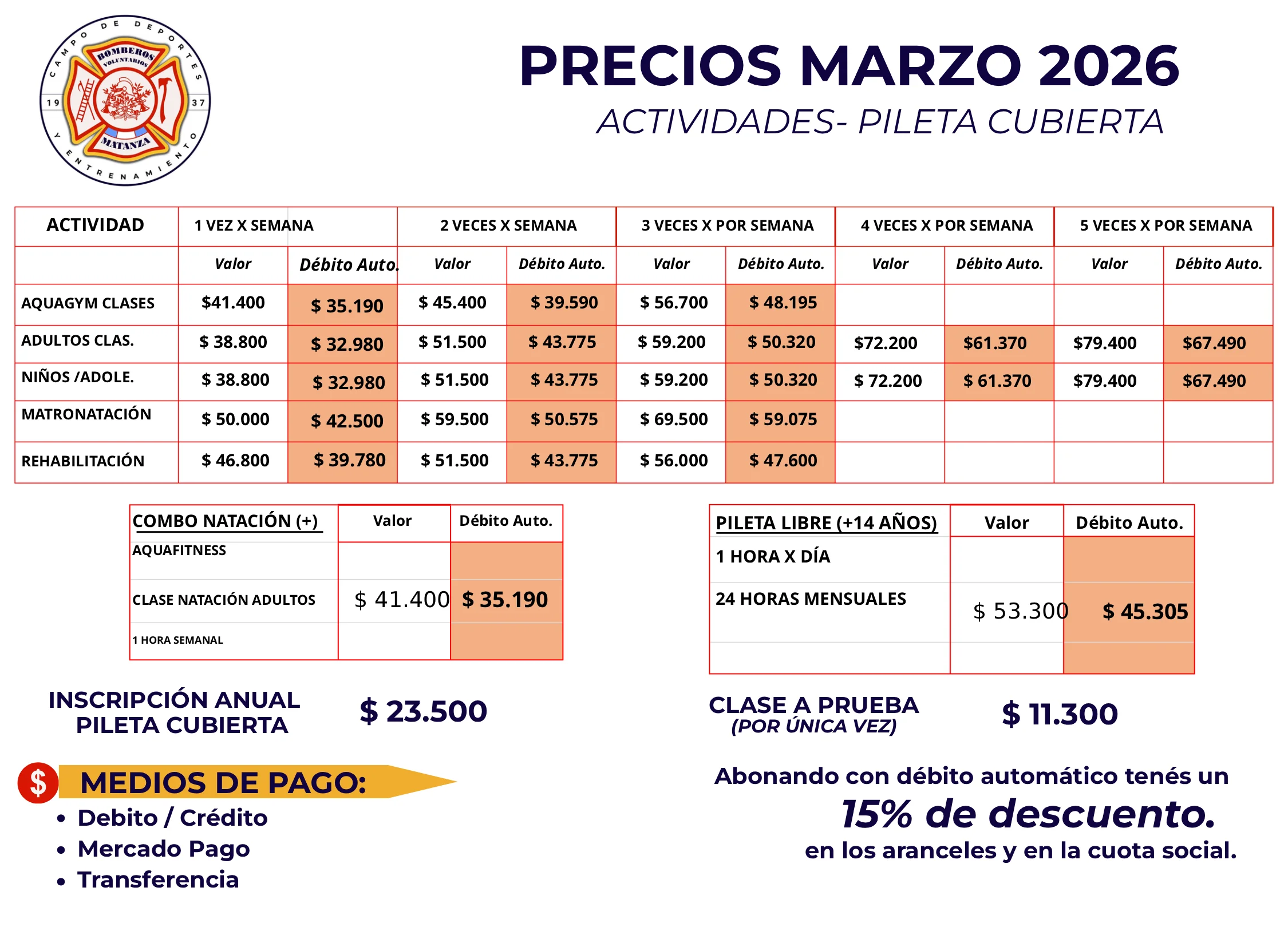 • Aquagym (gimnasia acuática) 14 años en adelante. 50´