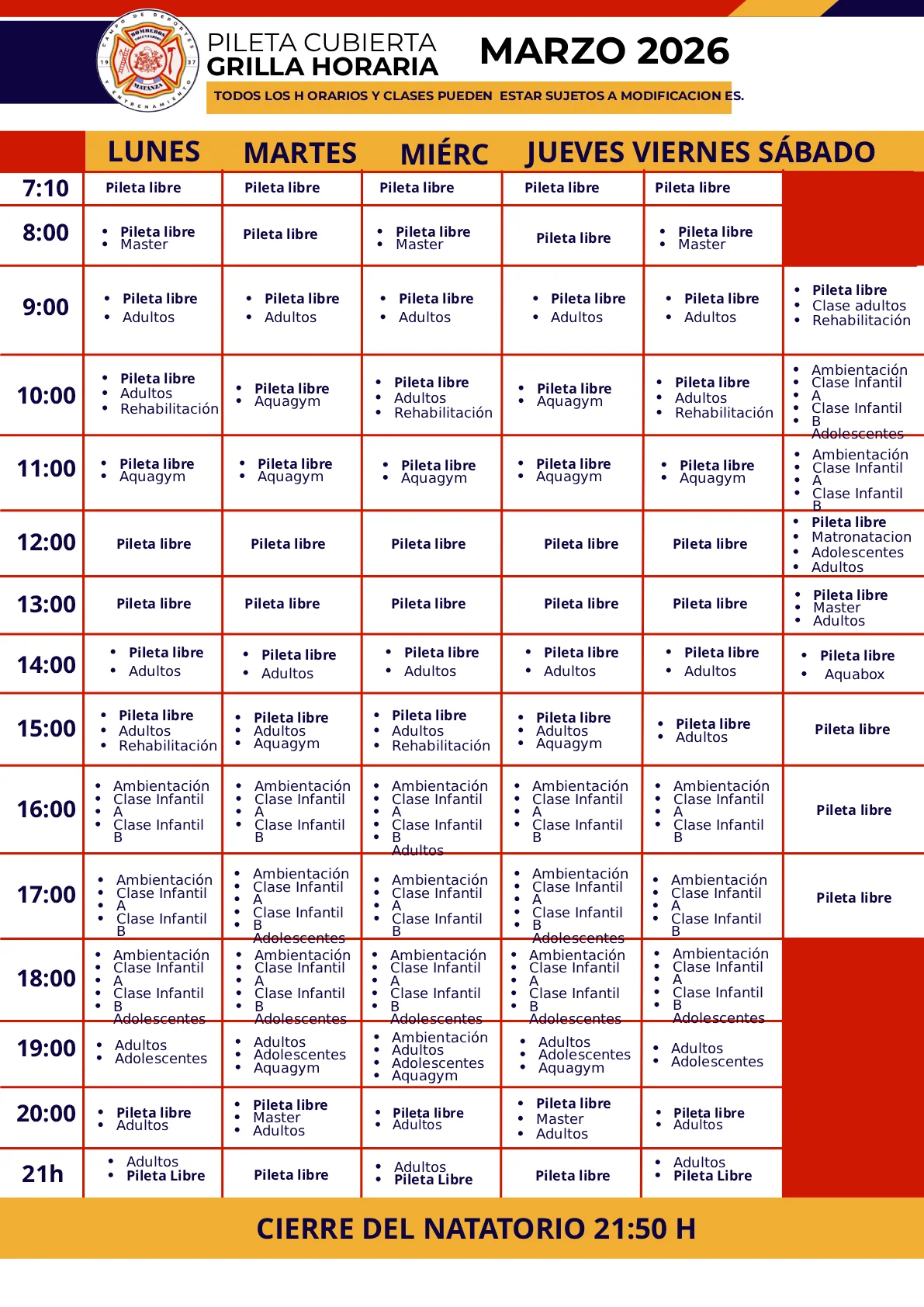 *Todos los horarios y clases pueden estar sujetos a modificaciones